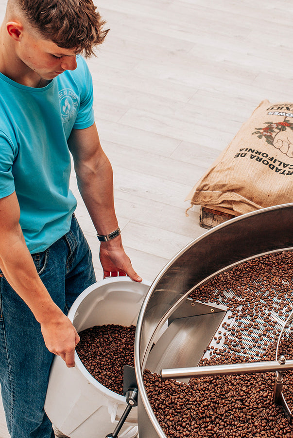 Roasting by hand gives our coffee the attention to detail and the distinctive flavour that it deserves. We roast in small batches, daily so that the coffee's individual characteristics can shine through. By tasting and sharing our roasting techniques we can offer a consistency and depth of flavour unique to The Bean Shop.