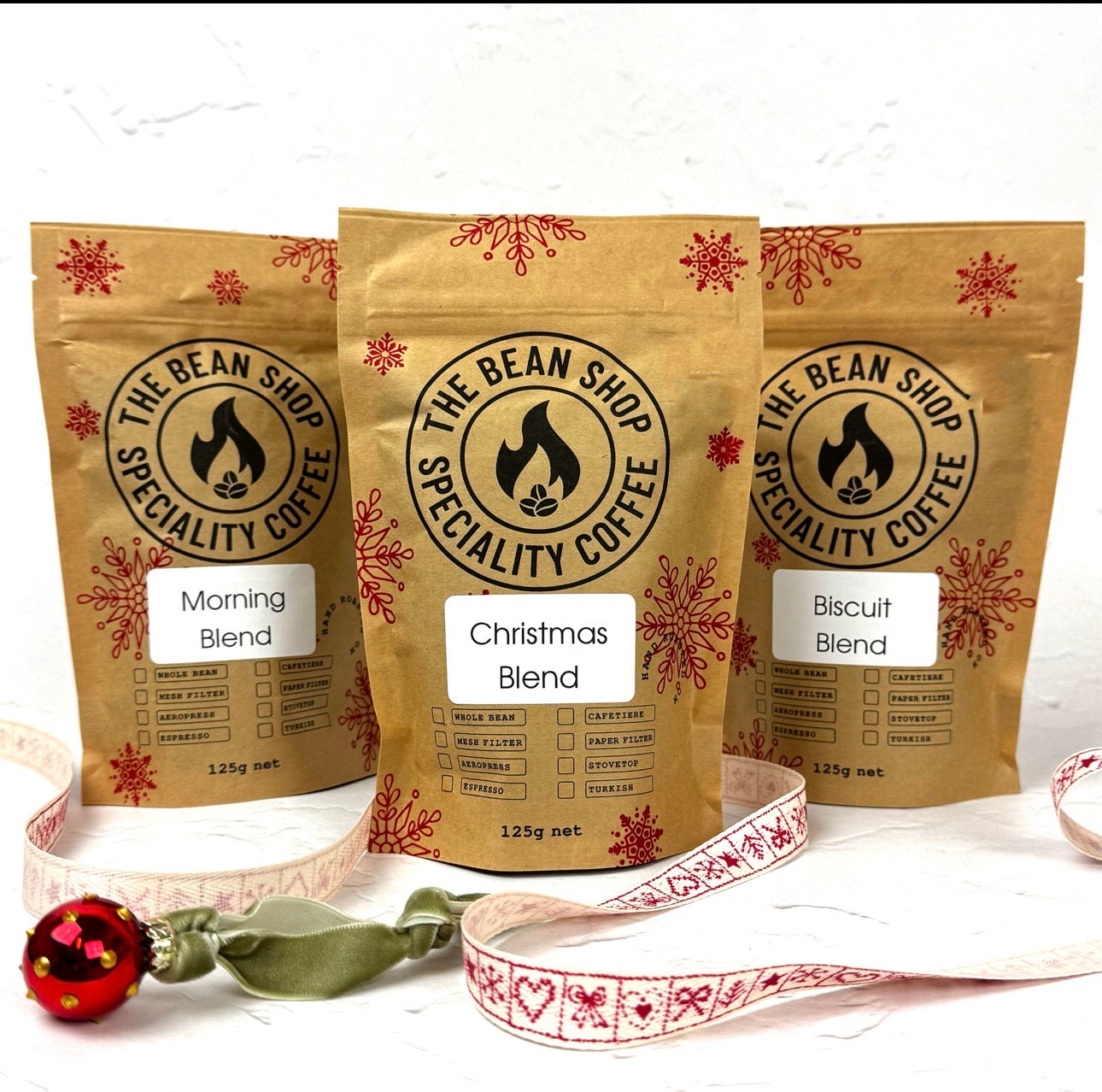 Morning Blend, Biscuit Blend, and our limited edition Christmas Blend,  this collection is designed to bring warmth and a touch of Christmas cheer to your daily coffee ritual.